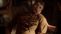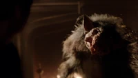 Jed finds Ben in the memorial library slumped over on a desk. Believing him to be asleep, Jed rouses him to discover that he's been attacked and has several wooden quills sticking in his chest and neck, though he's not dead. Ben, gasping with each breath, tells Jed that the creature is still there. The creature appears behind him and attacks Jed with one of the quills stabbing him in the shoulder. Jed removes it and attempts to attack the monster, but it vanishes before them.