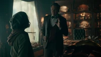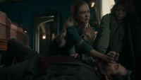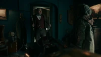 Back in the storage room, Lizzie demonstrates her attack on Hope, though each time she's forced to stop, never making contact with her. Professor Vardemus attempts to attack Hope, too, but Lizzie stops him. It's bad enough that she can't kill her, but now she assumes she's protecting her too. Rupert inquires exactly how she became a vampire, but in that moment, Hope is freed from the chambre de chasse.