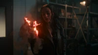 In the parking lot at Whitmore, Jen loads the sarcophagus in the back of a pickup truck. She questions why she's stealing the artifact and better yet why her locator spell wouldn't track her. Jen tells her it's a long story, but refuses to elaborate on the details. Hope demands answers and threatens violence. Jen tells her that she's a pacifist and doesn't really want to hurt her, but attacks first. Jen picks up the sarcophagus and slams it into her with excessive force and ease. Jen picks up a piece of the destroyed sarcophagus and plans to kill Hope, however Lizzie grabs her arm from behind and siphons from her, catching her off guard. Outnumbered, Jen decides to abandon the fight and flies off into the sky. Lizzie is confused, questioning what she is. Hope, hazarding a guess, believes she's a god.