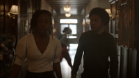 At the Salvatore School, MG, Jed, and Cleo convene a council meeting as leaders of their respective factions. The school is in disarray and they must decide what to do with their new guest, Ben. Though he doesn't pose a direct threat, yet, his presence is drawing monsters to him and could destabilize the school further. MG understands that he's a monster magnet and though he's usually for inclusion, they must look after their own before losing someone else. MG votes that he must go. Cleo, however, offers a counter. She may be able to find an inspired solution for what made Kaleb and Ethan attack Ben, but only if he remains at the school for her to study him. Cleo votes for him to stay. The tie breaking vote falls to Jed. He feels unqualified, but Cleo is quick to remind him that he's the alpha and that is the only qualification necessary. Jed understands both of their view points. He was the guy who used to punch new kids and distrust outsiders, however, he believes that the school is a better place for having Cleo. Before he can vote, he needs to talk to Ben and figure out if the risk is worth the reward.
