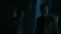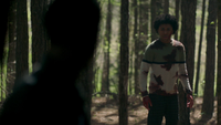 In the woods, Dorian and Alaric are searching for MG, given he has been missing for days. They eventually find him, but he is covered in blood and tells Alaric that there is a body in the woods. Believing MG to be responsible for the death — and given his Ripper status — Dorian subdues him with a tranquiliser against Alaric's wishes. As Alaric loads MG into the car, Dorian tells him that he has changed, but Alaric remarks that it is for the better.