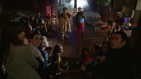 Back in the present, the Salvatore School is holding a theatre rehearsal of Romeo and Juliette. Hope is late for the rehearsal, however, and things become intense when she arrives in a bad mood, having broken up with Landon the previous night. Hope's magic begins to pool out and the room begins to shake before she storms off.
