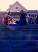 Hayley: "That professor guy is like, thirty, and he's hot and smart." (Hayley laughs. Tyler sees Caroline and Klaus walking across the lawn together. Klaus has offered his arm to Caroline and she seems to have gladly accepted it.)