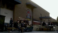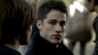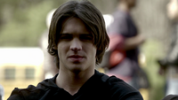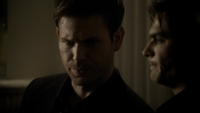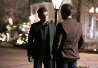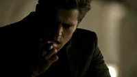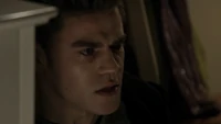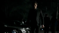 Stefan is trying to pull himself together in the parking lot. As he goes to leave, he runs into the man that he compelled earlier, who pushes him and apologizes. He pushes Stefan again, and snarks that he just can't stop saying "I'm sorry." Stefan tries to get him to leave, but the guy keeps pushing, so Stefan puts on his game face, grabs his fist with his hand and squeezes and scares him away.