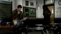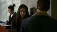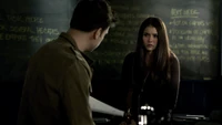 We cut away to Alaric's classroom, where Alaric is informing Elena that Jeremy has been writing several papers on vampires in Mystic Falls. Elena is in shock that Jeremy wrote something like that, and Alaric tries to reassure her that Jeremy told him that he didn't believe any of it was real. Elena replies that she hopes he is right, because she's done too much already to protect him from the supernatural world. Alaric gives Elena a look, and finally asks her how she deals with the lies and secrets surrounding Stefan and Damon being vampires, since she's lying to everyone she cares about. Elena explains that it's not safe for Jeremy, or Jenna, or her friends to know the truth. She says she doesn't like keeping things from them, but is willing to do it if it keeps them safe. Alaric admits that he thinks Stefan is a good guy, but in the end, he's still a vampire, just like Damon. Elena gets that it's hard to understand, but she says she knows Stefan is different and would never do anything that would hurt her.