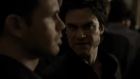 Stefan repeats that he has his reasons, and Damon again asks him what his reasons are. Stefan turns the question around on him, and asks him if he enjoys watching him struggle. Damon admits that he is, very much so. Stefan states that he has everything under complete control, and Damon humors him, telling him to continue making all the other vampires look bad. He gets up to leave the room, and leaves his glass of blood on the table just long enough that Stefan begins to consider drinking it, when Damon returns for the glass, and takes a deep swig in front of him before swanning off again.