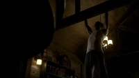 On the balcony, John joins Damon and they introduce themselves and make small talk about how long they've each been back in town. John asks him if he knows that the vampire problem is real, and points out that it's just like 1864 all over again, with vampires running amok, and says they'll just have to hunt them all down, throw them in a church, and burn it down again. Damon acknowledges that that is the story, and John clarifies that it's only part of it. When Damon asks if there's more, John explains that there's a lot more, and goes into detail about how the vampires were sealed in the tomb and waiting for someone to set them free, before pointing out that Damon already knew that. Damon looks uncomfortable, so John pushes harder; "I mean, you're the one who did it." Damon asks why he's telling him this, and John just says that he thought they should get the introductions out of the way. Damon reminds him that he could rip his throat out before anyone would notice, but he assumes he's probably taking vervain. John dares him to take a bite to find out, but Damon declares it unworthy of his time. Damon begins to leave, before zooming back, snapping John's neck, and throwing the body off the balcony.