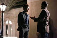 Damon and Stefan arrive at the Founder's Day 150 Year Anniversary Kickoff. Stefan panics and says that he shouldn't be there. Damon tells him to quit being a downer, and that since they are from a Founding Family, and that it is a party for Founding Families, it would be rude to skip. Stefan snarks that he liked Damon much better when he hated everyone, but Damon claims that he still does, but he just loves that they love him. After some laughs, Damon asks Stefan how he's feeling. Stefan gives him in the same "I'm good, I'm fine" as before, and Damon pushes him further. "No cravings? No urges? Is that whiskey you've been drinking all day doing its job?" When Stefan just laughs, Damon says that they can't change who they are. Stefan points out that nothing would make Damon happier than to see him give up, and tells him that he's going to find Elena. Damon gets in a last dig, telling his little brother not to embarrass him. Out of Damon's sight, Stefan grabs a glass of whiskey from a tray, downs it in one gulp, and places the glass on a table before moving on.