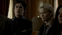 Damon meets up with Liz Forbes and compliments her on looking gorgeous out of her police uniform. Liz graciously accepts his compliment, and confesses that while she had her doubts about him, he has won her over, just like everyone else on the Council. Damon thanks her and tells her he's happy to be back in Mystic Falls and involved in the community, and admits that it's beginning to feel like home again. Liz cuts to the chase and tells him he's not going to like what she has to say: John Gilbert's claims checked out, and that the blood bank robberies and missing people are true; they may have another vampire problem. Jeremy interrupts their conversation to ask about the investigation into Vicki's death. She bluntly tells him that it was an overdose, but he still doesn't understand why someone would bury her body. Damon is noticeably uncomfortable, and Liz admits that while the investigation is still ongoing, there's nothing more to tell him. Jeremy concedes and moves on.