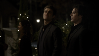 The Mayor thanks everyone for coming and announces that he's invited John Gilbert to ring the official charter bell. Damon is shocked when John joins him up front and rings the bell. Damon joins Alaric and tells him to look at John's right hand. Alaric says the ring looks just like his, and Damon points out that it would be a coincidence if he hadn't just come back to life five minutes ago. When asked, Alaric informs Damon that he got the ring from his wife, Isobel. Damon exposits, "Who gave birth to Elena, under the medical care of the esteemed Dr. Grayson Gilbert, John's brother!" They look at John, and Alaric asks if he thought John knew Isobel. Damon responds that he thinks John knows a lot of things.