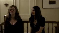 Back inside, Elena confronts Jeremy about his conversation with Sheriff Forbes. Jeremy thinks that it's a cover-up, but Elena reminds him that the coroner's office confirmed it. Elena's face gives her away when Jeremy asks her if she believes them, and when she finally tells him to just drop it, he can tell that she's hiding something. She denies it, and he looks at her suspiciously before leaving.