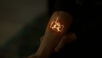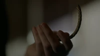 After some time, Hope bursts out of the room, hitting Alaric and MG with the door. They've told her "no". If Alaric was so concerned with his daughters, then he should have taken matters into his own hands, like she has just done. She shows them Ben's bangle, though it's broken in half and the spell that protected him is now gone, which means something very scary should be making its way to the school. She believes that if she can prove to them that they can't beat a run-of-the-mill monster without her, then they'll take her deal.