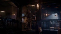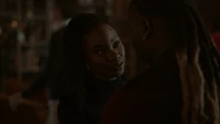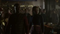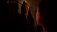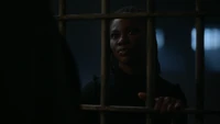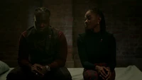 Cleo releases Kaleb from the cell, explaining that Hope has agreed to their terms, which included her making a new bracelet for Ben. Kaleb realizes there was no reason for her to be in there either, considering she was the one to save them. If he was so self-aware, he would have never locked her up in here. Kaleb admits he had help from the protoclown. It showed him the memory of what he did to her and it's kind of hard not to take the hint. Cleo tells him that she lived in the pit of Malivore for so long and most people cannot fathom what it's like to sit with that kind of stillness. However, the gift it gave her was knowledge of who she is. She is strong, with or without her power, even when she doubted it. He had even told her that, and yet he didn't believe it. Kaleb tells her that he believes it now, though hopes he's not too late. He's not, so long as he realizes she does not need a protector or a shield. In the future, she wants him to stand and fight beside her, not in front of her.