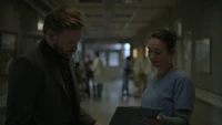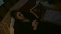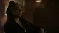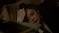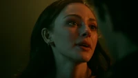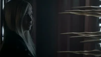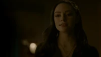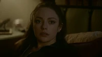Hope rests on her bed at the school and MG knocks on the door, asking if it's a bad time. He's brought her a blood bag. She'd rather have a human, believing there's no going back once you've had the real stuff. He reminds her that Lizzie is on their side no matter how over her head she's gotten herself into, kind of like how she is now. They love and miss her, as they do her. Hope dismisses him, telling him he can go and rolling on to her side away from him. MG leaves the blood bag and leaves. She turns over the photo of her and Landon so not to have to look at it. However, something catches her attention, believing it to be MG again. When she sits up, it's looking back at herself; her humanity. She tells herself that she couldn't get rid of her so easily.