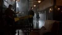 Hope joins MG and Alaric in his office. Hope has a problem that also involves the school, beyond Alaric's cane issue. Alaric notes that his body and brain are still having trouble synching up because of what she had done to him. His doctors said he's lucky to even be walking. If he could, he'll probably try to kill her for murdering Lizzie. Hope, however, corrects him. It's attempted murder, considering she transitioned into a vampire. Hope also admits that she may have accidentally started a chain of events that has led to the gods returning to our world and she's pretty sure those gods want her dead. MG wants to know why this is their problem, and Hope questions his presence. Alaric explains that he is his accountability buddy, suggesting that she should get one. The way she sees it, this is no different than when Malivore came into their lives. Alaric believes that he shouldn't have involved his students, but Hope now needs an army to face the gods and these students are the only ones with the skill set. Alaric tells her that he's done making the decisions alone and defer the decision to them. Hope demands for him to be an adult and make them do whatever he wants. Hope turns to MG, trying to sway him to her cause. MG doesn't believe her to be right and she's given them more than enough to worry about. Changing tactics, she tells them that her god problem is also their Lizzie problem.