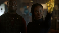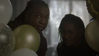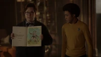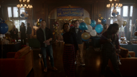 Students are busy preparing for the party as Kaleb approaches Cleo, asking where he should hang up the banner. Cleo decides to do it herself using her magic, though, she quickly loses control and the banner falls to the floor. Kaleb tells her that she doesn't have to prove anything to him, but it was more for herself. She's still confused about what Aurora did to her and her powers, and she doesn't know who she is without them and hopes that it's not permanent. Kaleb's sure that once Dr. Saltzman returns, he'll be able to help her and believes that things will get better for them all.