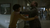 At the hospital, Alaric is released, though a nurse tries to convince him to stay a bit longer. MG is already there and presents him with a specially crafted cane and they embrace in a hug. Alaric, however, winces due to the pain of his still recovering body. Alaric thought Kaleb was supposed to pick him up, but MG explains that he was told by Kaleb that Landon had asked him to change how he will do things while they're in this crisis. MG is his new accountability buddy. Alaric accepts, so long as it doesn't interfere with him helping his daughters.