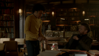 Alaric pours himself a drink with Hope mocking his accountability. He questions why she's still here. She figured she'd give him one last chance to save the world, now that his "Jiminy Cricket" is gone. In a way, she was right. He is the adult and it means having to tell kids like her things like this. They don't need her, but they want her here, because they still believe the real her is still there. She agrees if his students follow her order, but he refuses. They will work with her and not for her; that is their deal and she can take it or leave it.