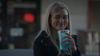 Aurora drives the car, still with a flat tire to a gas station with the map in hand. Lizzie comes out with two slushies, knowing that she would take the bait. She was also testing her to prove a point. Aurora didn't need to look at that map, but she did anyway. She explains that maybe that's not the only thing she's right about. Aurora questions if this is modern therapy.