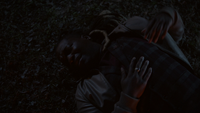 Jed chases after Ben through the woods, concerned about the monsters that will still be after him. The alternative is that they'll be coming after him at the school and Cleo's already locking up Kaleb. People could get hurt if he stays. Jed explains that as much as they don't want monsters knocking at their door either, protecting innocent life is their first rule. This is as far as he needs to go. Ben pulls out chains and asks him to chain him up. Jed is confused. He'll be defenseless while he gets eaten alive. This is Ben's best option, but Jed refuses, believing it to be torture. That is his life though he will return no matter what any monster does to him, unlike the innocent people in the school. His plan makes perfect sense and questions Jed's hesitation. Jed's been meaning to talk to him at the right time and today at the confetti cannon would have been better but he chickened out. However, before he's able to explain himself to Ben, the monster attacks Jed from behind, biting into his shoulder.