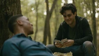 Back in the woods, Rafael is sure he has found a place for them to camp, but Landon tells them that they should keep moving. Before Rafael is able to say anything otherwise, the two are shot in the neck by tranquilizer darts and fall unconscious. When they awake, they are greeted by Jeremy Gilbert, who promises the two that they have nothing to fear from him and he is their new best friend.