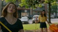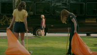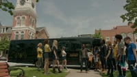 The Salvatore bus stops at Mystic Falls town-square, where it is revealed that the punishment is being on clean-up. Lizzie pokes Hope for information on what she is being punished for as Alaric never gets mad at her, but Hope refuses to reveal anything. Lizzie makes a big deal out of working with Josie to clean up the town, but Josie gestures that she would rather work with Hope instead of her sister. With this, MG is confused about who he should work with, Lizzie or Josie, but eventually ends up working with Lizzie to clean up some graffiti.