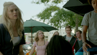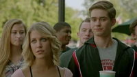 Lizzie and MG are cleaning graffiti from a shop window that reads "Salvatore is 4 Loosers" when Lizzie rebukes MG for being so slow. He admits that he is doing the best he can without using his vampire abilities while Lizzie questions why Kaleb isn't helping. Kaleb admits that he doesn't think the punishment is fair as they won the game fair and square, but MG disagrees as he doesn't think it's fair for humans to be playing against the supernatural. Just as they are beginning to wipe off the graffiti, Connor and Dana arrive, with Connor sarcastically remarking that it would be a shame if someone redid the graffiti later that day. Dana tries to get MG's attention, but Lizzie warns her off, MG takes a break nevertheless, leaves with Dana to make Lizzie jealous. Connor mocks Lizzie by throwing his milkshake over Lizzie and acting as though it was an accident, leaving Lizzie dripping in milkshake whilst the rest of the students around laugh at her.