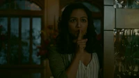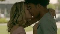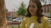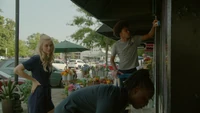 Landon counts the money they have made but notices a $5 bill in the stack that has a message scrawled in bright red ink—"RUN, WOLF, OR DIE." Alarmed, Landon begins to look around to see if anyone has followed them into the woods. Rafael, now eating curly fries, notices his worried look and frowns. Landon doesn't want to worry Rafael and admits that everything is fine, but notices Hope standing in the distance in what seems to be an astral projection. He exclaims her name, but she disappears and we are brought back to Mystic Falls, where Hope questions why Josie stopped the spell. Josie admits that she has a twin pain which usually means that Lizzie is in trouble. Hope and Josie try to leave back to the school, but Dorian refuses to let them go, citing that Alaric is with Lizzie and everything is under control, much to Hope's dismay who believes things to be different. Meanwhile, MG compells Dana to forget what has happened between the two.