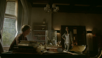 Alaric sits in his office examining the knife when he is interrupted by Emma Tig, who questions why he has not been present at his counseling, remarking that it is meant to be mandatory for all students and staff. Alaric tries to dismiss her, citing that he is trying to figure out the supernatural knife as whoever wields it has the power to destroy the world. This prompts Emma to suggest that Alaric destroy the knife, however, he admits that he has tried that but the knife is indestructible, even to explosives and hydrochloric acid. The two are interrupted by Lizzie who arrives screeching about the milkshake she has had thrown on her, she blames Alaric for the events as he missed the game in the first place. She insists that she will not go back to Mystic Falls and Alaric allows her to go help with the primary school students in the garden instead.