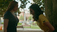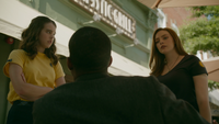 In the town square, Josie feels nauseous when she notices Dana and MG making out by a nearby tree. Hope makes a joke that she can't judge given her last crush, but Josie laughs admitting that her last crush was Rafael, but Lizzie has called dibs. This shocks Hope, who asks why Lizzie always gets to call dibs and when it will be Josie's turn, but Josie admits that it just works that way. Feeling a friendship kindling between them, Hope reveals that Alaric knows she used dark magic and that is why she is in trouble but reassures Josie that she didn't tell Alaric that she helped. Josie thanks her, admitting that their mother goes on long missions and Lizzie sometimes gets testy as she misses her. Hope admits that she knows the feeling and Josie tells Hope that she remembers when her mother would visit and how beautiful they thought she was. The two wonder what Landon and Rafael are doing, and Hope admits that she knows a spell that will allow them to see where they are, but isn't taught at school so will have to be a secret.