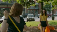 In the town square, Josie inquiries about what happened when they went to find Landon, as Landon and Rafael never returned, and Alaric was visibly shaken. Not wanting to reveal much, Hope tells her that nothing happened, but makes a comment about Lizzie which annoys Josie. Josie asks why Hope always picks fights, but Hope insists that she doesn't. In order to try and get out of the conversation, Hope stabs herself in the foot "accidentally" with the litter picker, asking for Josie's help to remove it so she can heal.