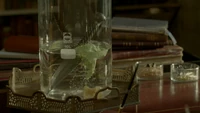 In the garden, Pedro tells Lizzie that the gargoyle statue behind her has moved, but she is hesitant to believe him, admitting that the sixth graders are learning illusion spells this semester. Pedro doesn't believe this to be a trick and when he turns around the statue is right behind Lizzie, which shocks her when she turns around to see that the statue has actually moved. When she faces Pedro again, she sees that the gargoyle is moving towards him with a red glow in his eyes. Lizzie siphons some of Pedro's magic before sending Pedro to find Alaric quickly. With Pedro safe, Lizzie raises her hands and casts a spell: "Imperium monstrum" before the gargoyle spreads its wings, forcing Lizzie to shriek loudly and curl into a ball. Alaric arrives not long after and notices Lizzie on the floor, but she is unable to move or communicate. Pedro reveals that the statue has done something to her. Alaric gathers some of the students around Lizzie along with Emma to watch over her while he calls Dorian. He asks Dorian what he knows about gargoyles, specifically the "Legend of the Gargoyle Petrotho" as he believes that he has poisoned Lizzie. Dorian says he will call back when he has done the research.