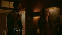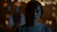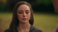 Lizzie sits with Alaric and wonders how long it would take for Hope to wake up. After a few hours, she'll awaken in transition and then she'll need to feed to complete it. Lizzie questions if that is an option she or Josie should consider, believing it would solve the Merge. Alaric believes in theory it would be possible. Lizzie's unsure if that's what she wants, becoming a vampire, but it's an option. The day they're afraid of just might come. Lizzie would like to talk about the Merge more instead of it being a big, unspoken thing.