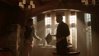 Hope embraces Freya in a hug as they reunite. Around the room, Freya lights candles and she notices the necklace that was given to her long ago. It's like having her family close. Rebekah, unfortunately, couldn't make it. She enjoys a good dramatic entrance but Hope questions what it will feel like. Freya explains that Elijah described it to her once. At first, there's nothing, but then you slowly realize there's nothing. That's your consciousness reigniting, then light will trickle in and you'll open your eyes and you'll be back. Colors will be different, sounds will be fuller and she'll feel small movements of air on her skin. It can be overwhelming, but reassures her that she can handle it. There's nothing to worry about and muses she's only there for the birth of the one and only tribrid because of family bragging rights. Hope has another question. There were wonderful parts of her father, but worries she may have all the other parts, too. Klaus used to say that the good came from her mother and believes she'll lose the good she has left. Freya reminds her that she is equal parts her mother and father and she would never disappear without a fight. People were afraid of her because they thought she would turn out like her father. Klaus was complicated and flawed and loyal and he would have let the world burn just to save the people he loved. But Hope is willing to let go of someone she loves to save innocent people that she'll never even meet. Freya thinks that she's already better than all of them and her parents would agree.