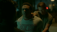 Night has fallen on the football field at Mystic Falls High School. Blake throws several balls through the air, attempting to make it into a trash can, though he misses. A ball is thrown from behind him and hits the trash can. Ethan appears behind Blake, shocked to know it's him because of his busted arm. He explains that he's found someone who's hooked him up. Ethan rhetorically asks about the number of games they've lost in a row and how their future games are dwindling. He brings him to Malivore, though Blake mistakes him for Landon. Malivore explains that he transforms people and Blake unknowingly accepts the offer, believing it's about performance enhancing drugs. Malivore is glad to transform him. In fact, he's been obsessed for centuries with consuming everything he could, but he's had it all backwards.