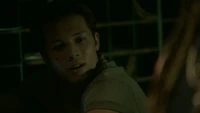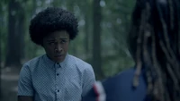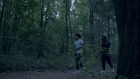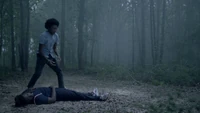 In the woods, MG leads Kaleb down a path. Kaleb is curious to what his plan is and what they're doing. Far enough out, MG explains the trolly situation and how they have to choose the lesser of two evils for the greater good. They have to save the greatest number of people and they have to make a choice. MG has made his and Kaleb has his own. However, before Kaleb can walk away from him, MG vamps behind him and breaks his neck and lays him on the ground. He apologizes and hopes that he'll understand when he wakes up.