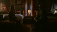 Back at the school, Hope storms into her dorm room with Alaric hot on her trails. MG, Josie, Lizzie, and Kaleb listen from afar, the vampires using their enhanced hearing. Hope is adamant on turning, but Alaric believes there's another way. Malivore has found a way to turn innocent people into monsters that he can control. Eventually, they'll run out of cages and chains and spells. The longer Malivore remains alive, the more innocent people are in danger. Alaric believes her to still be in shock, but Hope refuses. Alaric would have made this choice a long time ago, but he believes she's not ready. Hope believes he doesn't trust her but he reminds her that she is still her father's daughter, no matter how much power she'll have. Crossing a line, Hope tells him to leave. The choice is hers and hers alone to make. Alaric asks her if she's ready to give up on Landon and Cleo.