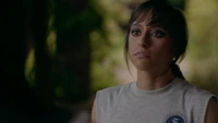 Jed meets with Finch as they're about to head back out. He explains that they'll have to split the pack and she can lead half to the the Falls. Jed runs off as Josie approaches Finch. Josie attempts a peace offering, but Finch declines. Finch is still not in the mood for stories, as she's still coming to terms with the Merge, whereas Josie has had a year. Josie tells her to take her time and whatever she needs. Finch needs to know if she's actually going to try and win. She realizes how terrible it sounds, but she can't still if she's already decided she's not fighting. MG interrupts them; he and Josie have squad business to handle.