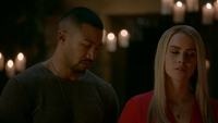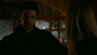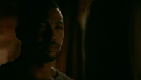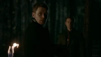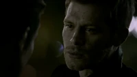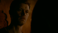 Back in the Garden, Klaus' is being haunted by visions of Mikael and Camille. Mikael tries to bate Klaus into attacking and 'disciplining' Hope, while Camille tries to convince him to ignore the Hallucinations, and when Klaus bites, Mikael retorts that they should've murdered Hope before she was even born, and Klaus' eyes glow blue like the Hollow.