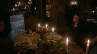 At the dinner, Marcel ensures that he will never abandon Hope. The family engage in burning wishes, a tradition that they have carried out through the ages in which they write wishes on a slip of paper and throw them into the fire. Klaus admits that he has liked the joy of tormenting his siblings, but nonetheless, they mean everything to him, and he knows that they will prosper long after he is gone, and that is why he is not afraid for Hope's future. Elijah repeats something that he said in Always and Forever about being bound to those you share blood with. Klaus insists that although he may be leaving, it is not the end of the Mikaelsons.