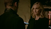 Klaus awakes at the Abattoir, with Elijah sitting over him, having absorbed some of the Hollow. Klaus asks what Elijah has done, and he replies "what I've always done. Followed you into the fire". Elijah convinces Klaus that he owes it to his family, and his daughter, to say goodbye properly. Klaus admits that he honors Elijah for trying to make him a better man all of his life, however, he doesn't wish to say goodbye. With that, Klaus leaves the room, and we next see him on the balcony, when Caroline Forbes appears, sarcastically retorting that she would hate to murder him while he's contemplating suicide. Caroline admits that she is in New Orleans to collect a debt. She plays the voicemail from Klaus in which he asks for Caroline to travel with him, and she retorts that he owes her a tour.