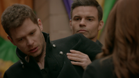 We see Kol attempting to leave New Orleans, but Rebekah stands in the way of the vehicle, refusing to let him leave. Meanwhile, back in the Garden, Klaus has escaped the shackles, and Marcel retorts that it's Mardi Gras, and they'll be unable to find him among the rafts and celebrations. Nevertheless, Hope leaves to find Klaus among the celebrations, while Marcel follows.